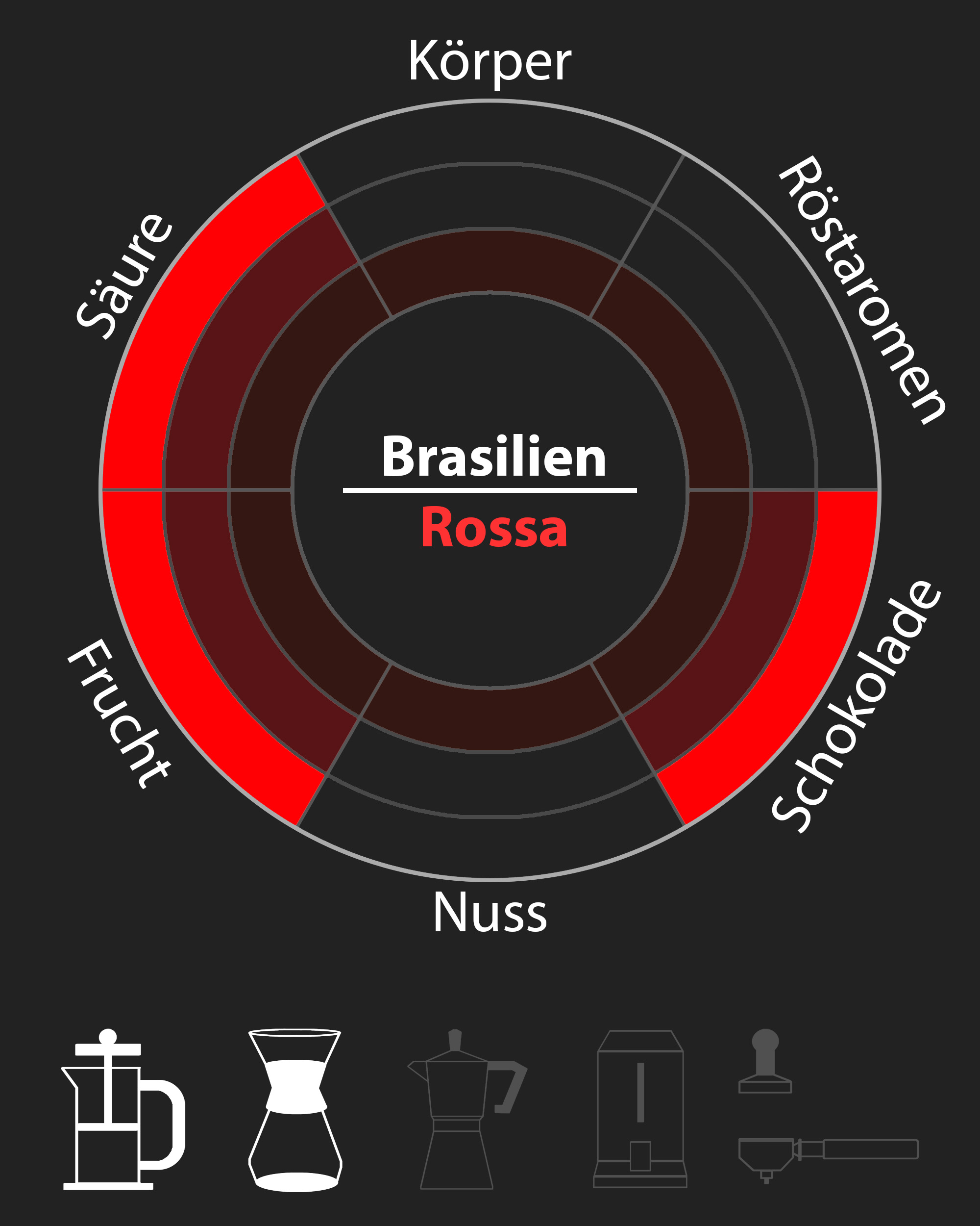 Als schwarzer Kaffee ist unser Rossa perfekt, aber dank seiner intensiven Aromen ist er ein fantastischer Partner für einen schokoladigen Kaffee, wodurch er auch als Cappuccino ideal ist. Eine besondere Empfehlung sollte noch für Cold Brew ausgesprochen werden, durch die kalte Extraktion wird die Säure unterdrückt und die schokoladigen Untertöne kommen zum Vorschein.